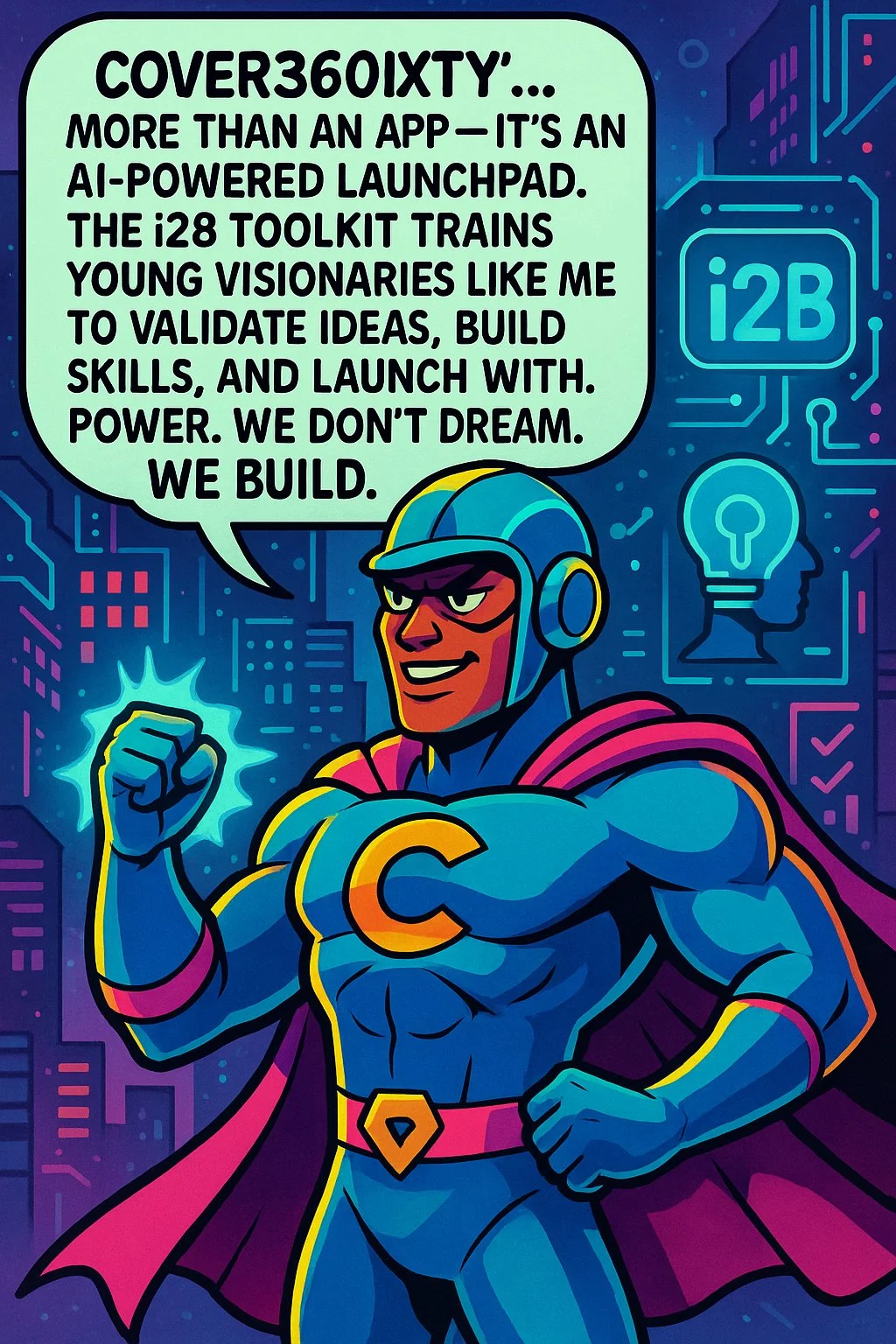 The Cover360ixty platform is an Ai-powered digital incubator and entrepreneurial platform offering the i2B Entrepreneurial Toolkit to guide early-stage founders through idea validation, skill development, and launch readiness within a vibrant community of skilled experts.